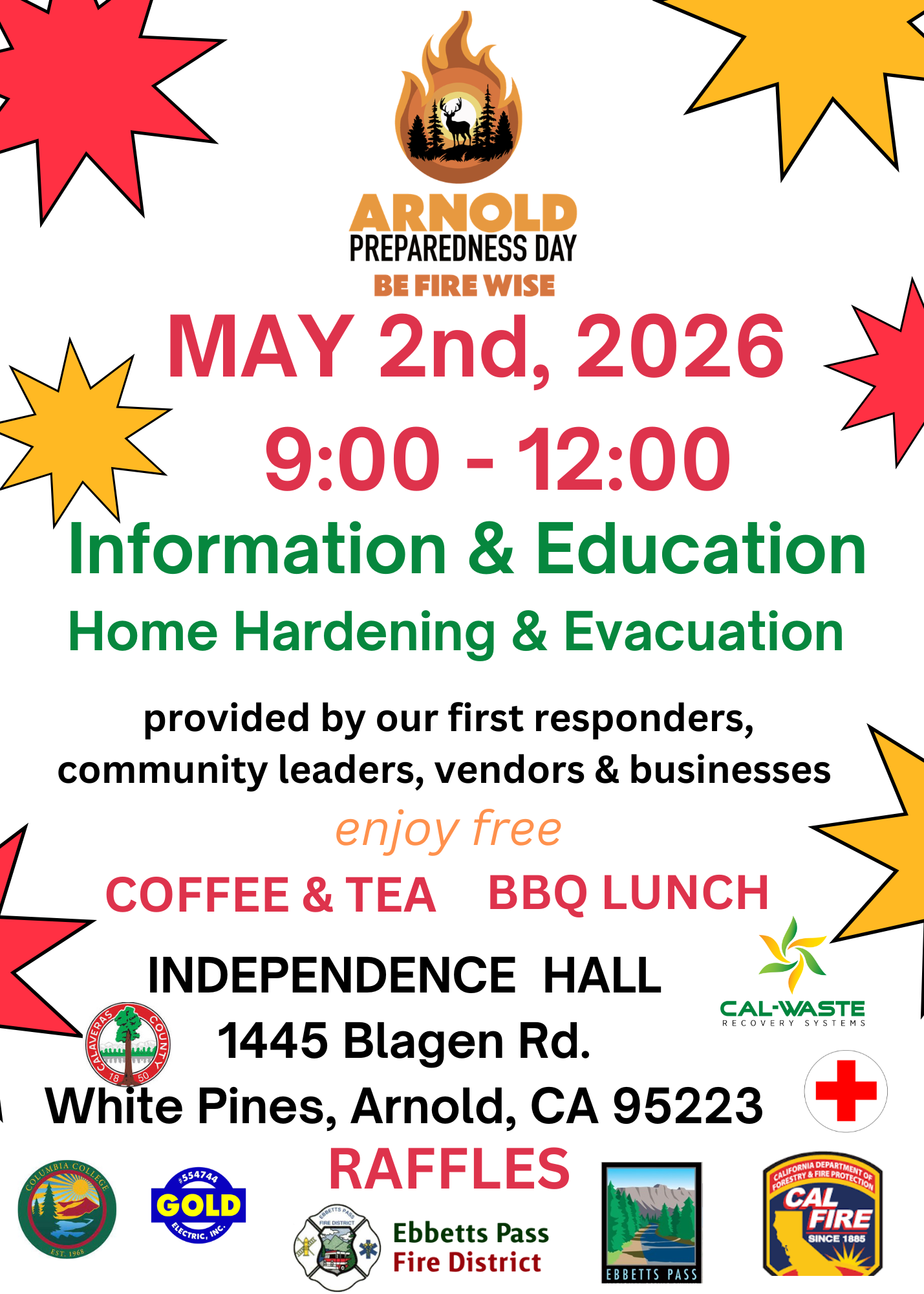 We are very Firewise and natural disaster conscious and working on our rating., and on this site have provided you with check lists and recommended ways of protecting yourself in case of an emergency, lost hikers, and County programs Efforts by Local citizens, US Forest Service and Sierra Pacific Industries (SPI) are in the process of circumnavigating Arnold with a Fire Break. Our fire prevention check lists and emergency evacuation information serve as guides for you to use to maintain your personal safety and that of your family, friends, renters for the safety of your property should a wildfire or other natural disaster occur in our area. We are conscious of water conservation due to our drought and have provided the latest information on this topic.